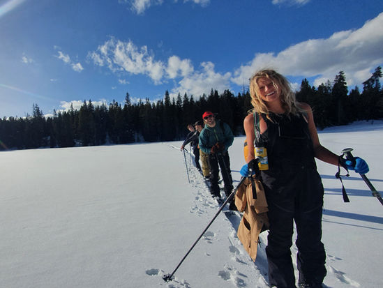 A non-traditional & sloppy adventure shown in these curated photos of our team of 10.. The charge was lead by our trusted Australian sisters 8 hours up-hill to finally find our hut off the very old & interesting Smugglers Road [real name, not an actual road.] To our luck, the 2 night tenants in the Fabi Hut next door to us, were full Local Lords from Woody Creek [the longtime hometown to Hunter S. Thompson] just the next village from Aspen. Our joint celebrations lead to a sunset proper disco dance on the roof of our Hut. Although the hike in ruined all of our ideas of big mountain snowboard lines, the outhouse & cabin goodtimes was worth the trek in alone!